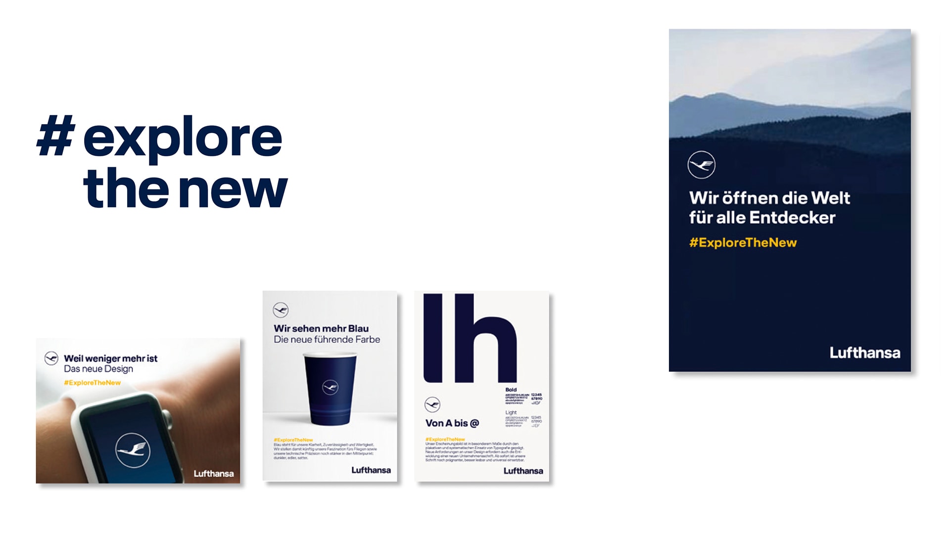 The new corporate design. An exhibition and a two-phase campaign take employees on a journey into the DNA of Lufthansa. The studio is designing the visual communication of the new corporate design for the intern communication for and in collaboration with LIGANOVA. An interdisciplinary team creates both a retroperspective and a perspective on the company’s design, but also on corporate design in general. The exhibition at the Lufthansa Aviation Centre in Frankfurt is open to the public and has been extended several times. It can also be visited on a virtual tour.
